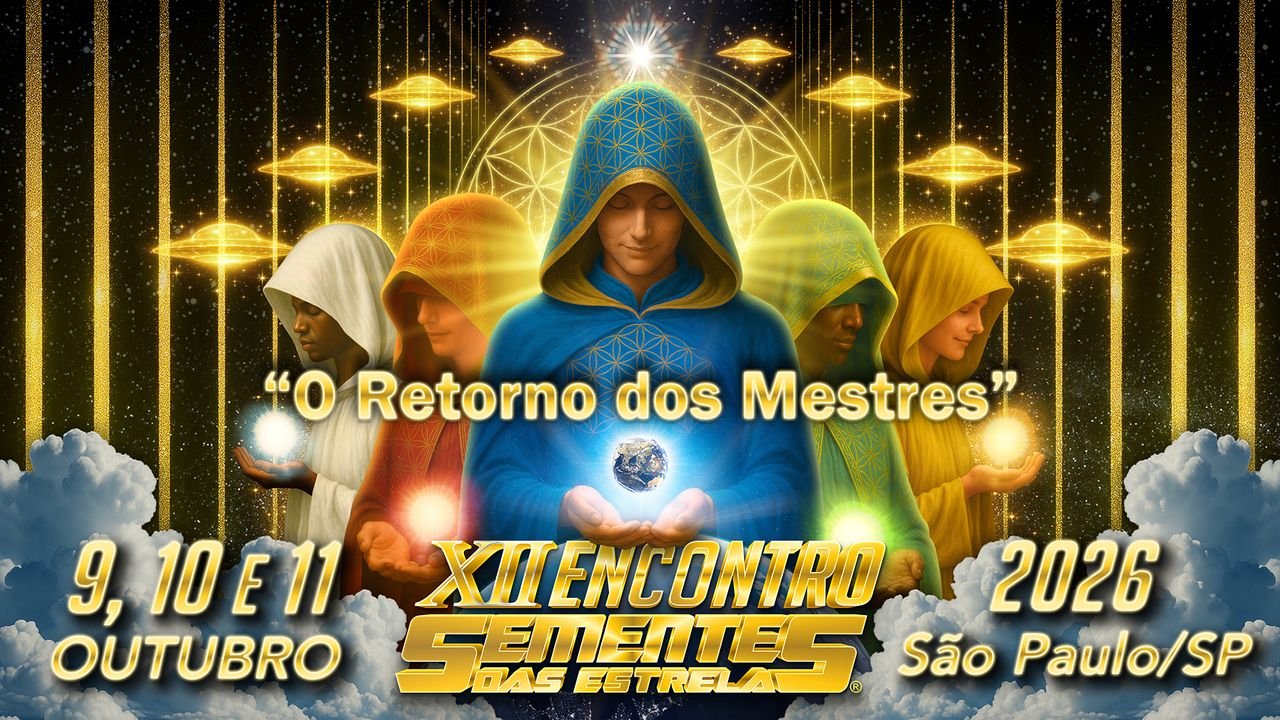 Em Outubro de 2026, dias 09, 10 e 11 vamos nos reunir novamente e ancorarmos essa força juntos em nosso XII Encontro Sementes das Estrelas!